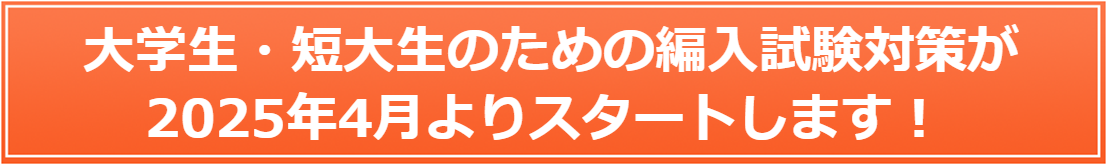 | 2025年度実施試験対応 (2026年4月入学目標) | 実戦力強化コース (専門科目+英語) | 最大12ヵ月 | 正規受講料 231,000円 が 新規開講キャンペーン特価 115,500円 | |